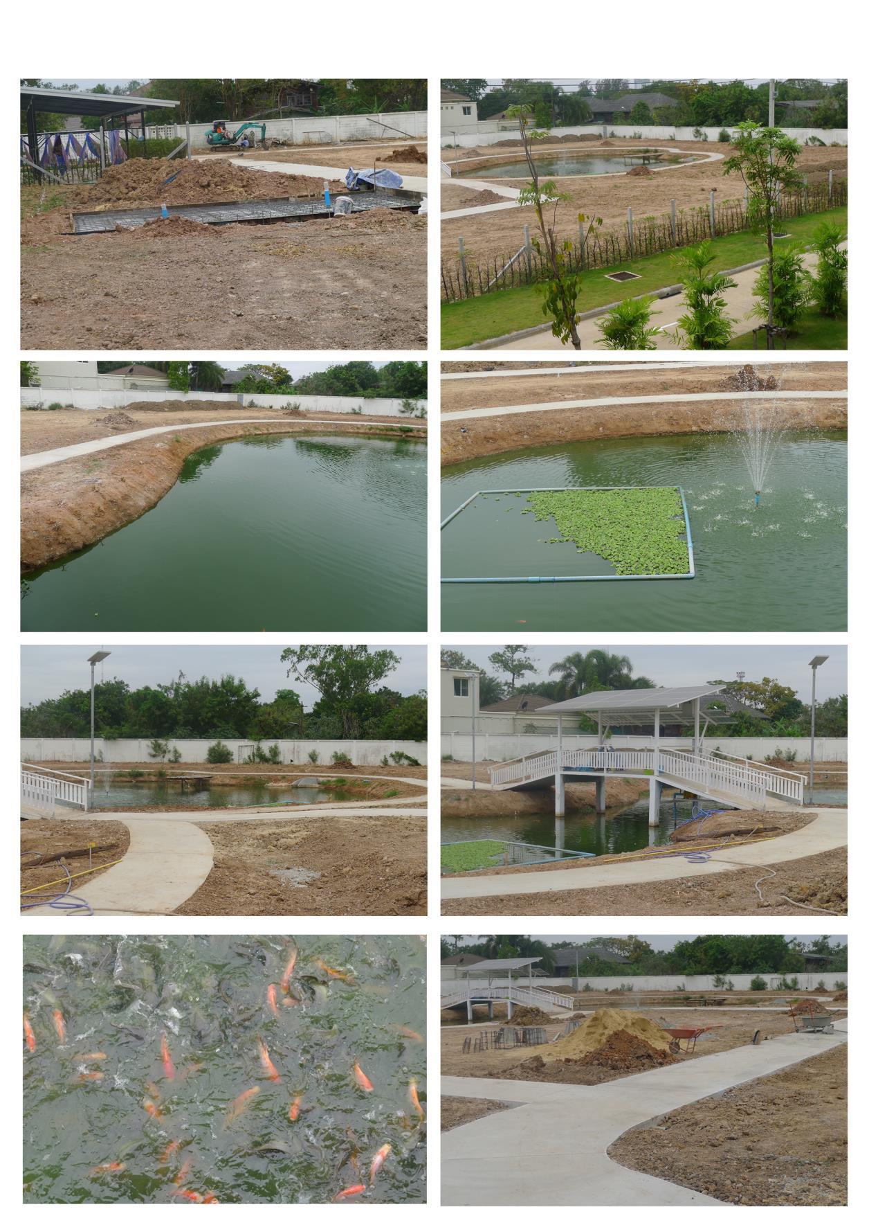A total of 4 rais (6.500 square meters) next to the Home for The Aged are used to implement the “Healing Garden” with fruit plants and eatable vegetables with a small lake in the middle.