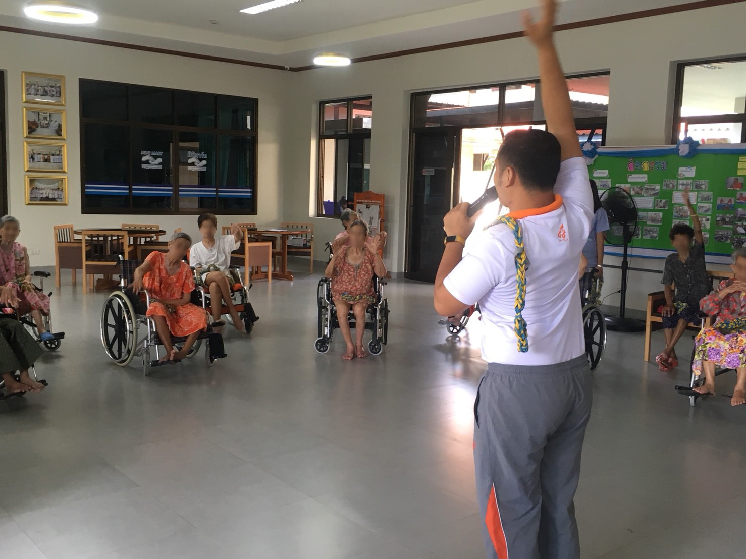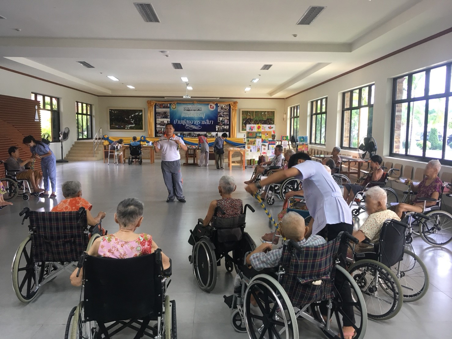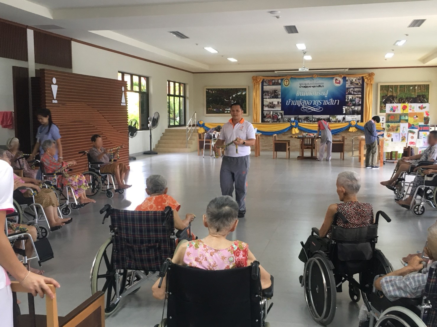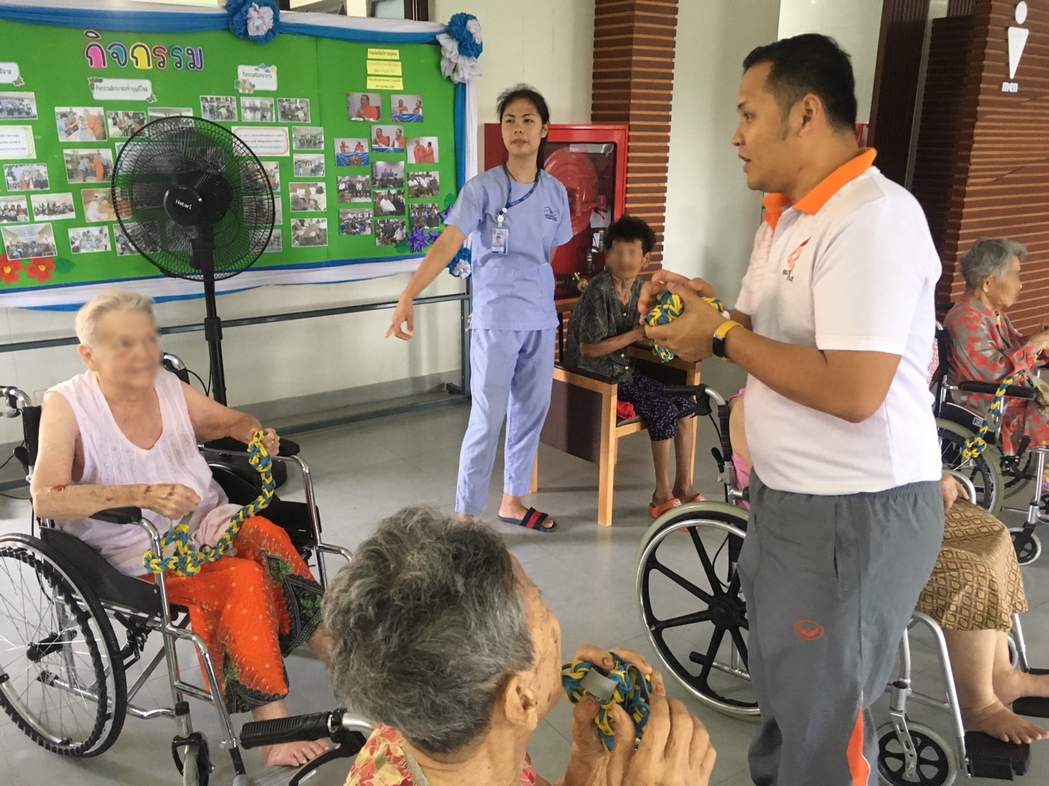 บ้านผู้สูงอายุราชสีมา ได้รับความอนุเคราะห์จาก สถานกีฬาและสุขภาพ มหาวิทยาลัยเทคโนโลยีสุรนารี โดย อ.ธันย์ธเสกข์ ธัชวงศ์สง่า ในการทำกิจกรรมออกกำลังกายให้กับผู้สูงอายุ โดยใช้ยางยืดในการออกกำลังกายในส่วนต่างๆ เพื่อให้อวัยวะและกล้ามเนื้อได้มีการกระตุ้น เพื่อเพิ่มศักยภาพของร่างกายให้แข็งแรง ซึ่งกิจกรรมจากสถานกีฬาและสุขภาพ มหาวิทยาลัยเทคโนโลยีสุรนารี นั้นจะมีเป็นประจำในทุกวันพฤหัสบดีที่ 3 ของเดือน ซึ่งทางบ้านผู้สูงอายุราชสีมา ขอขอบพระคุณความอนุเคระห์จากทางทาง สถานกีฬาและสุขภาพ มหาวิทยาลัยเทคโนโลยีสุรนารี มา ณ โอกาสนี้